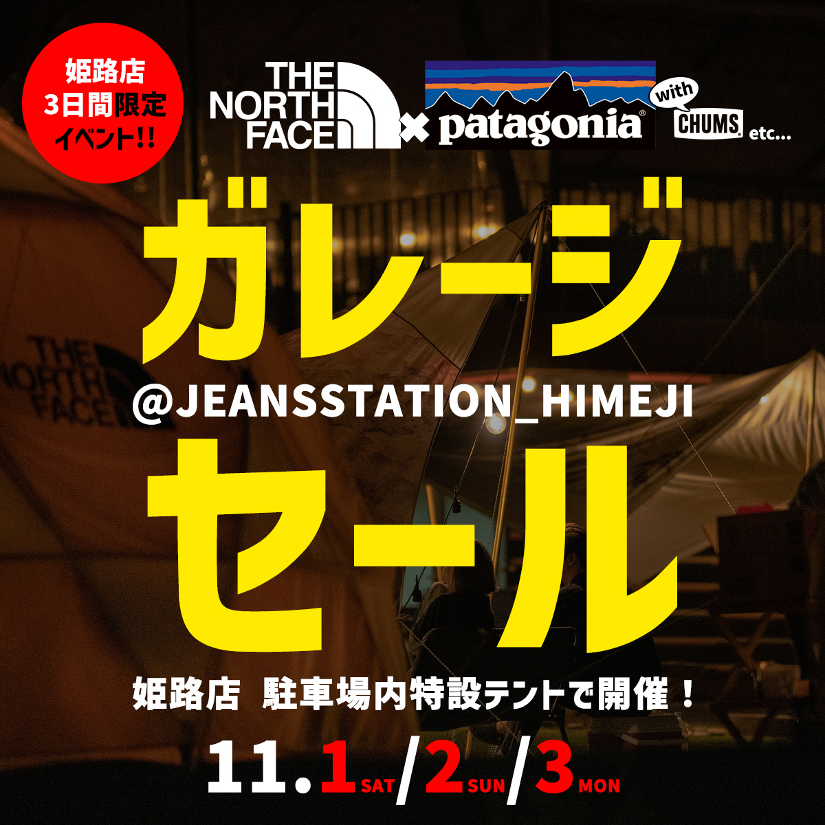 姫路店 特設テントでTHE NORTH FACE×patagonia」のガレージSALE開催のお知らせ