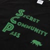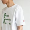 キャッチーな3段ロゴのバランスが絶妙なプリントTシャツ。秘密のコミュニティーに参加するには必要なパスはサイのロゴかもしれません。袖にタイマツをモチーフにしたアイコンがアクセントに。