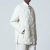 着心地を重視した、ゆったりしたサイズ感の「M-65」タイプのダウンジャケット。前たて左右についているボタンを閉じていただくと、シルエットを細身にすることができます。ヘチマキルトのダウンステッチが、ミリタリー感を演出。上下から開閉できるWジップファスナーは、スリットのように開き加減を調整できます。また、両脇のスリットは、可動域が増え動きやすさをサポートし、 ボトムのポケットに手も入れやすく、重ね着を楽しんでいただける仕様としました。軽くて暖かく柔らかい、ミリタリーテイストのダウンウェアです。