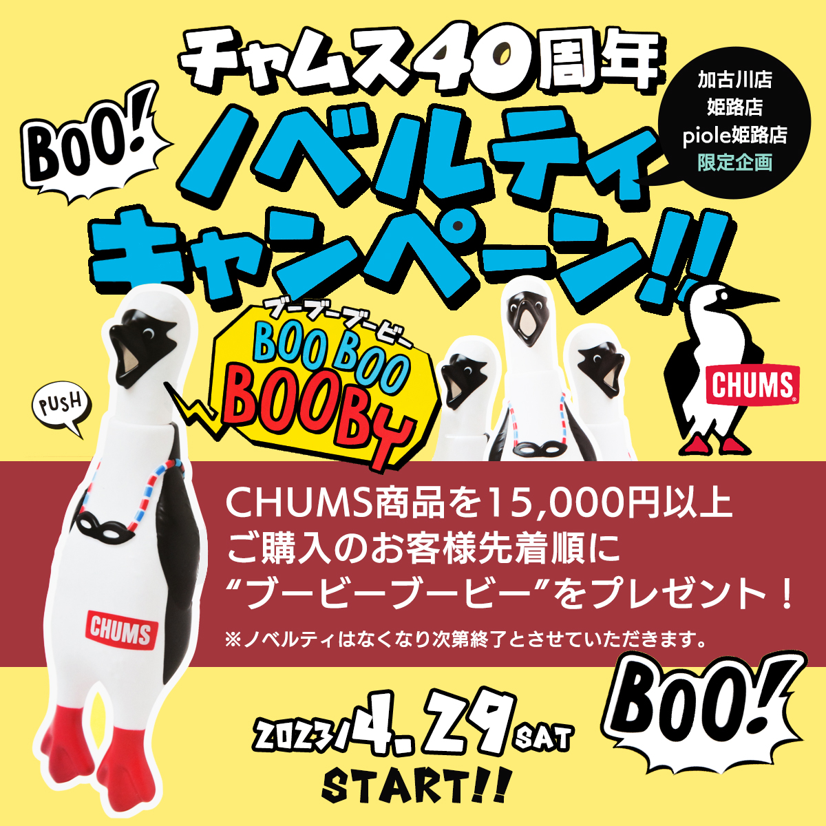 CHUMS ノベルティキャンペーン開催のお知らせ-40周年記念ブーブーブービー-