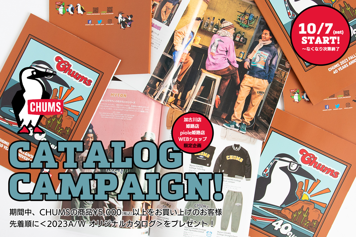 さらに、CHUMS商品を5,000円(税込)以上ご購入のお客様先着順に<CHUMS 2023F/W オリジナルカタログ>をプレゼント。