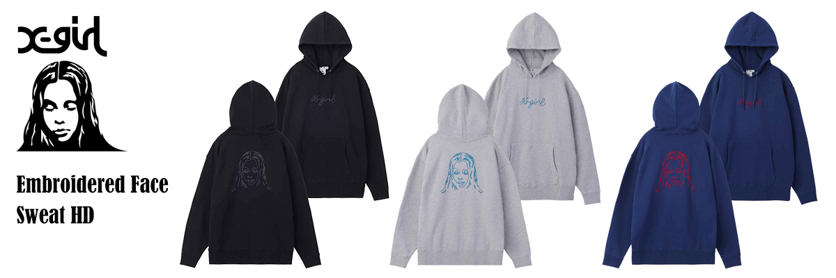 X-girlロゴ刺繍が映える!ベーシックなスウェットフーディ。フロントに筆記体のX-girlロゴ、背中にフェイスロゴ刺繍が入ったデザインです。立体感のある刺繍で特別感のある印象に。