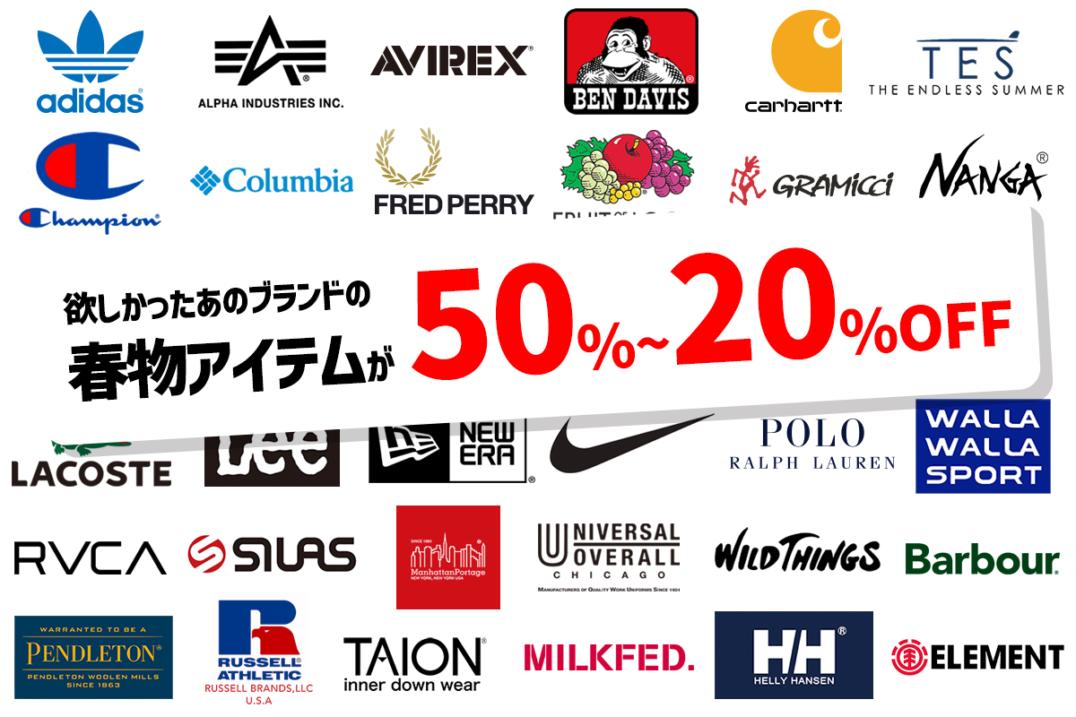 ジーンズステーション全店舗では4/26(土)からゴールデンウィーク期間中、<2025GOLDEN WEEK SALE>を開催いたします。店内春物商品のほとんどが20〜50%OFFの値下げになるお買い得のチャンス。また、夏まで使える人気ブランドアイテムが期間中のみの特別価格で登場します。ぜひこの機会をお見逃しなく!