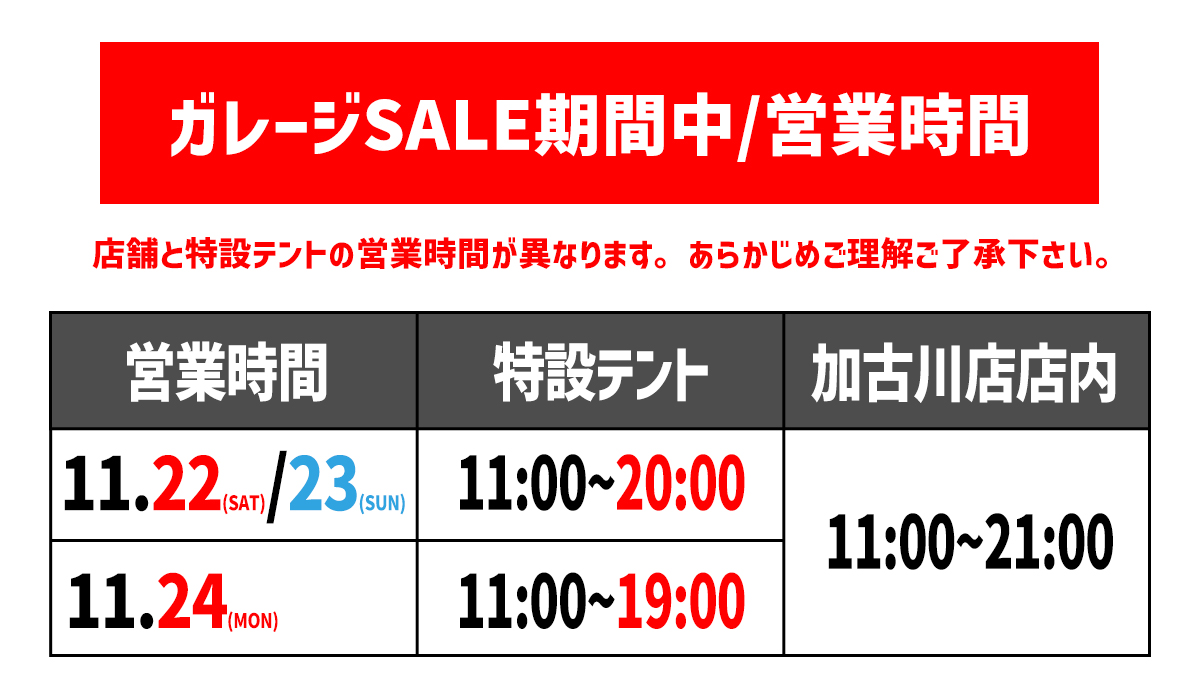 年に1度のガレージSALE!ぜひ、この3日間はジーンズステーション加古川店にお越し下さい。